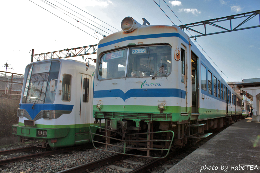 30分近く田原町駅に停車しているのかと思いきや、乗って来た急行を追いかけるように普通列車が。