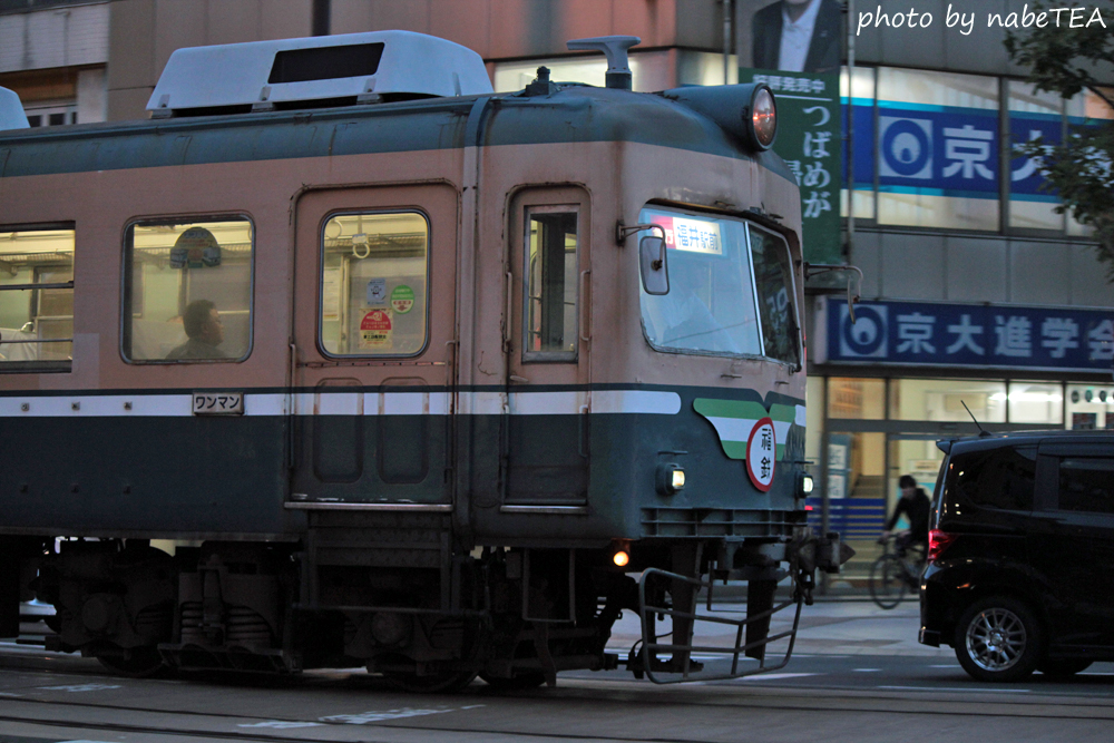 一緒に活躍する名鉄譲渡の各車と色が揃っているのはイメージ的にも「福井鉄道はこの色!」と意識的にも統一され、良いと思うのです。