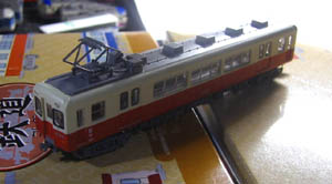 阪神電気鉄道の方もえちぜん同様きれいな塗装。でも1両じゃ様にならないかな。ただ、1個1個の買い集めでこれを狙うのはかなり厳しいかも。片方がダミーカプラー、もう片方ハアノールトカプラーが装着されています。