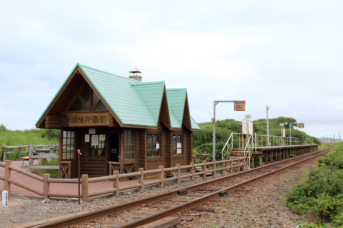 国道244号線「斜里国道」との並走区間にある釧網線の原生花園駅は年間夏季6か月しか営業しない臨時駅。