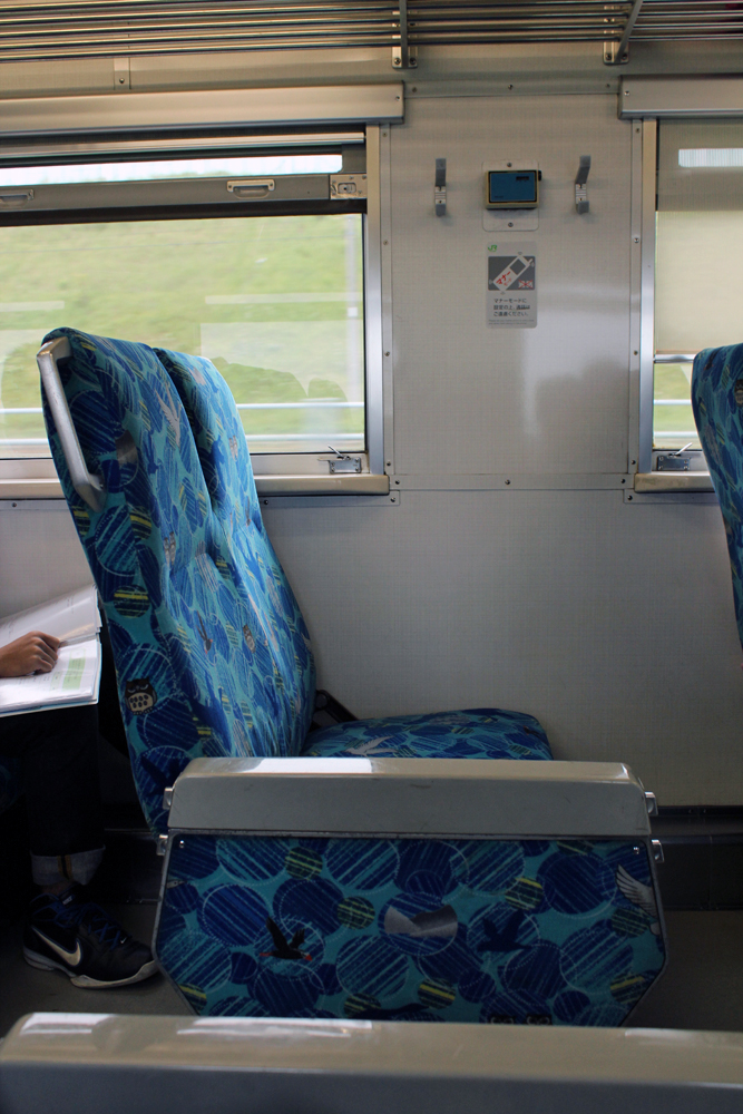 ただし、青だと国鉄型気動車のシートと変わらぬ雰囲気になってしまいますから、「濃いめのスカイブルー」というのが無難な選択でしょうか(笑
