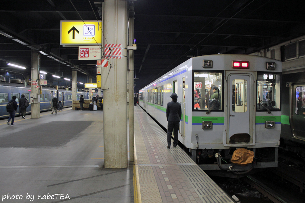 ウトウトしては停車の衝撃でハッと目を覚ましという事を繰り返しつつ定刻の6:07、札幌駅へと到着したのでした。