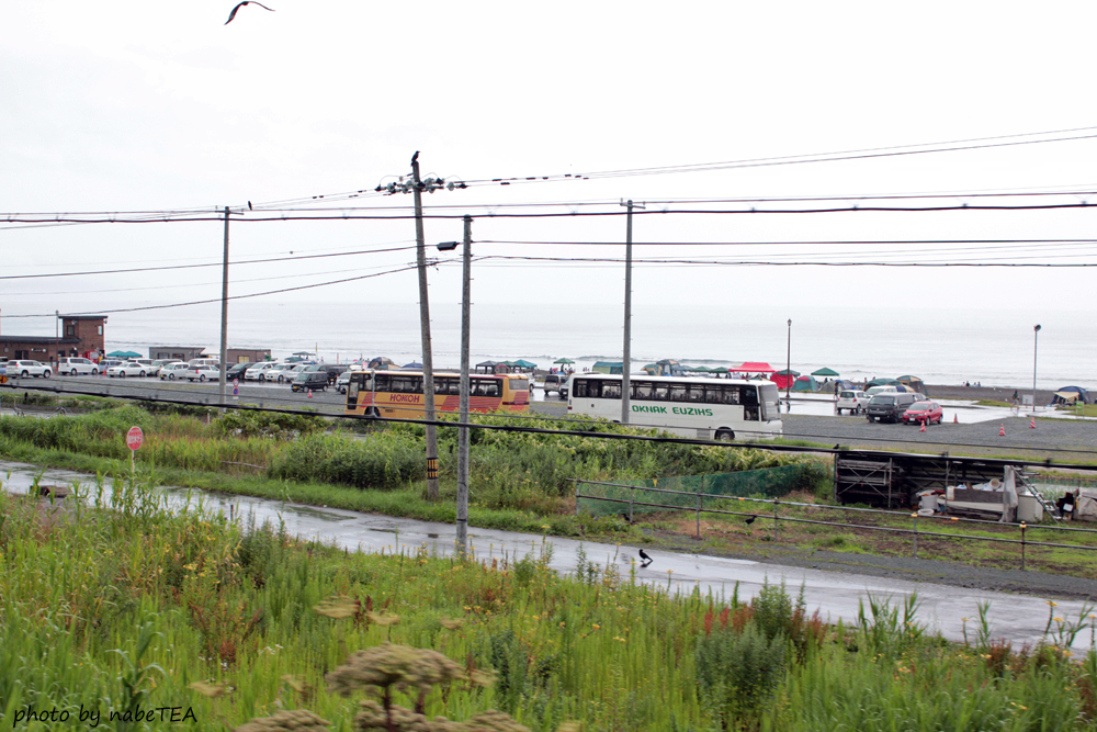沿線の海水浴場は雨にも関わらず結構な盛況ぶり。