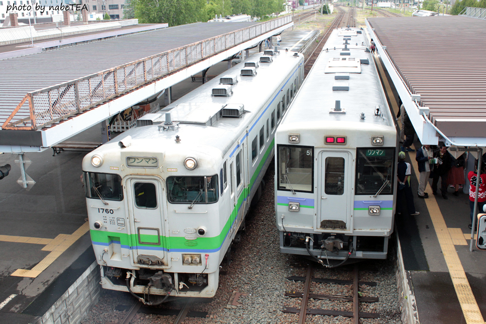 ▲根室本線9627D東鹿越行き(左) と 富良野線730D旭川行(右)