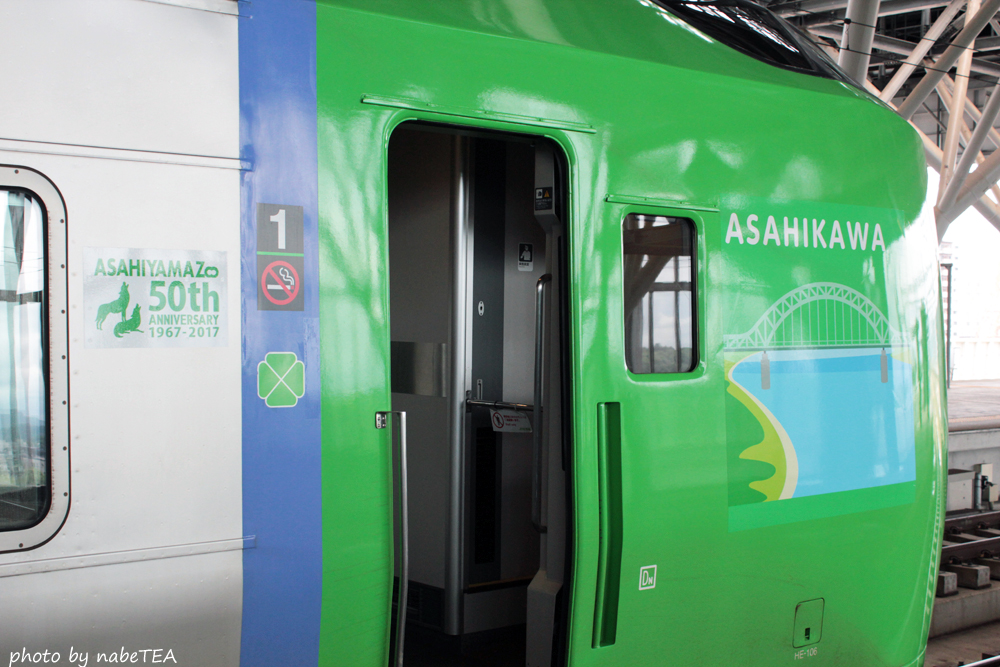 乗車したHE-106・206編成には「ASAHIYAMAZOO 50th」のステッカーが。