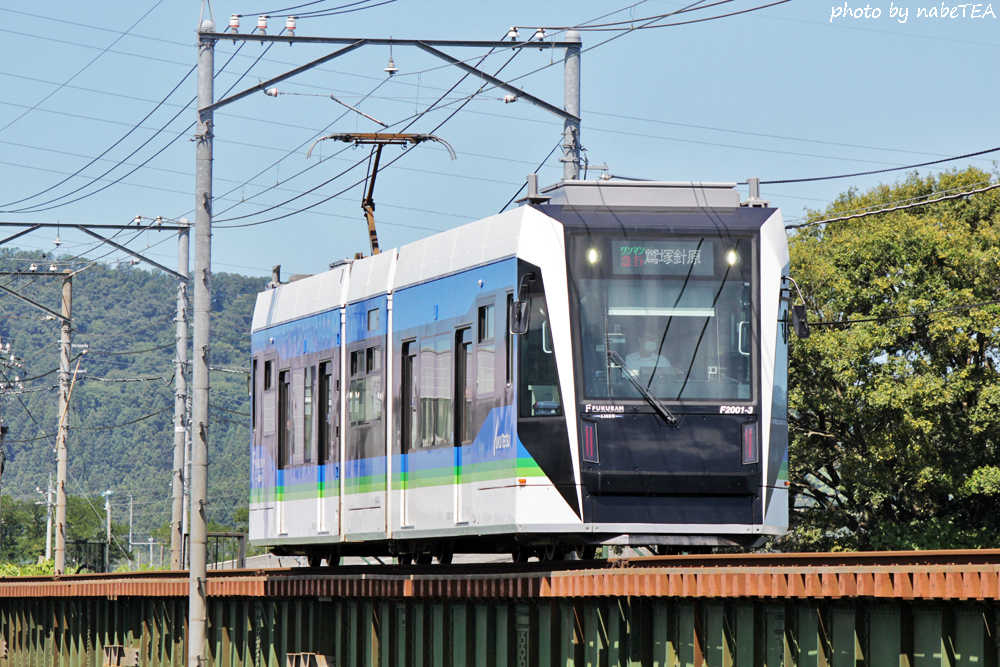 ▲F2000形「フクラムライナー」が今回の主目的でした @家久~サンドーム西 日野川橋梁