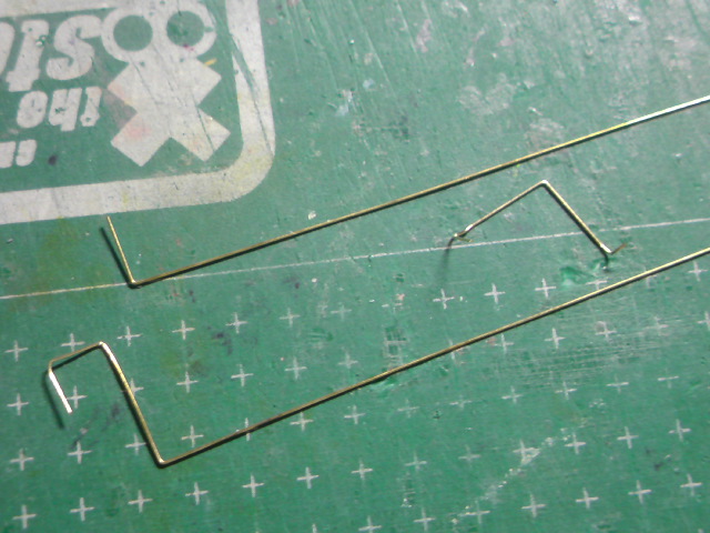 パンタを仮止めで搭載して位置を微調整しつつ、屋根にドリルで穴をあけていきます。配管となる真鍮線はその穴に合わせて事前に曲げておきます。