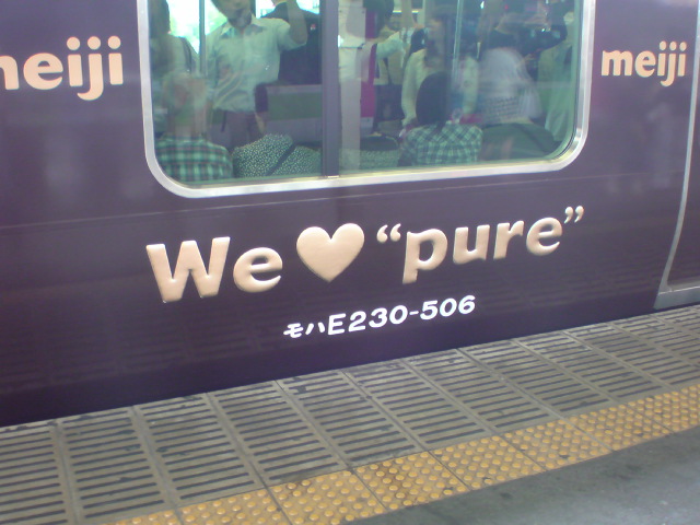 車体から車内まで明治チョコレートの広告で統一されているので「チョコ電」と言えないこともないですね(笑)